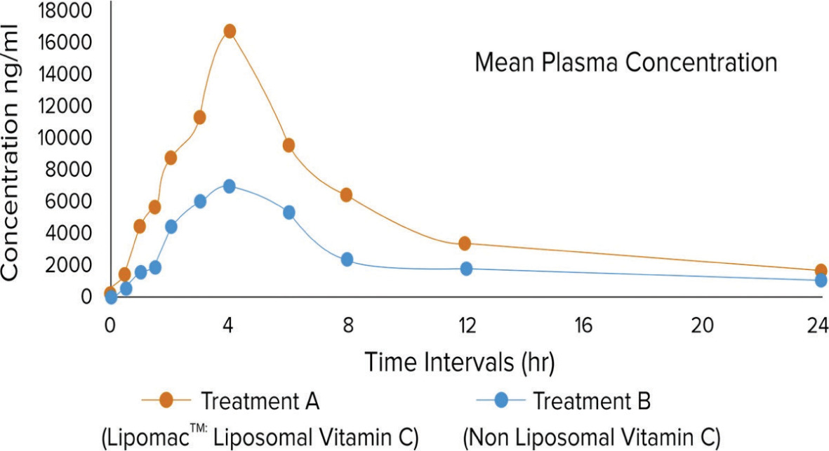 The investigational product for this study was liposomal vitamin C (LipomacTM), and the control product was nonliposomal vitamin C.